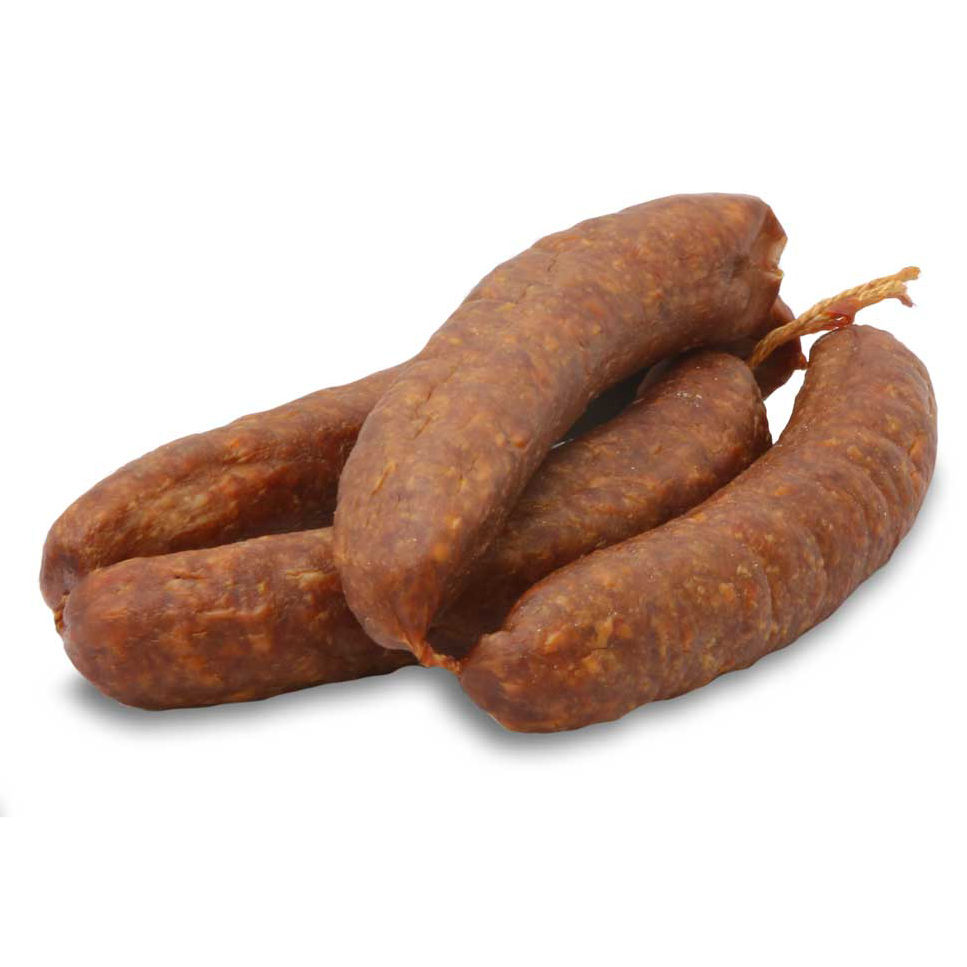 Rohwurst aus Schweinefleisch von unseren Schweinen und Rindfleisch vom Angus-Rind, über Buchenholzspänen geräuchert, zum Kochen oder roh essen, ohne Nitritpökelsalz