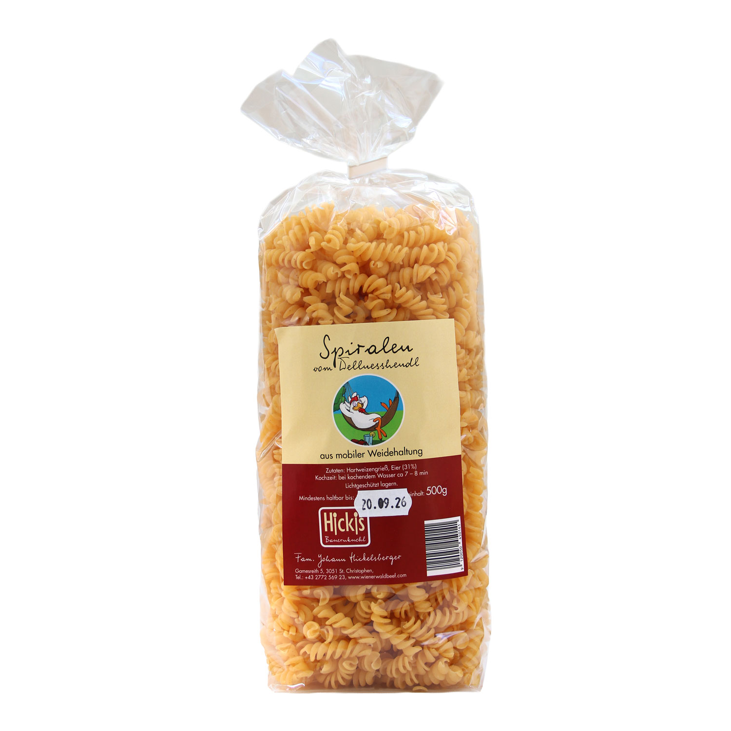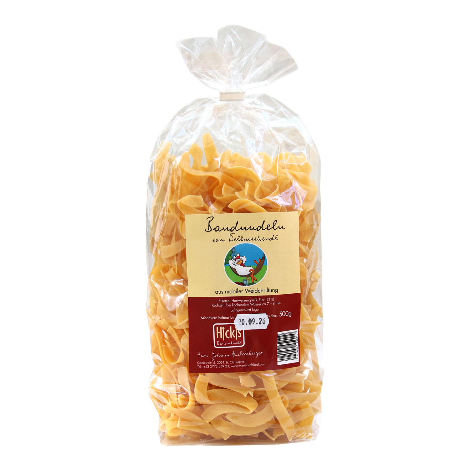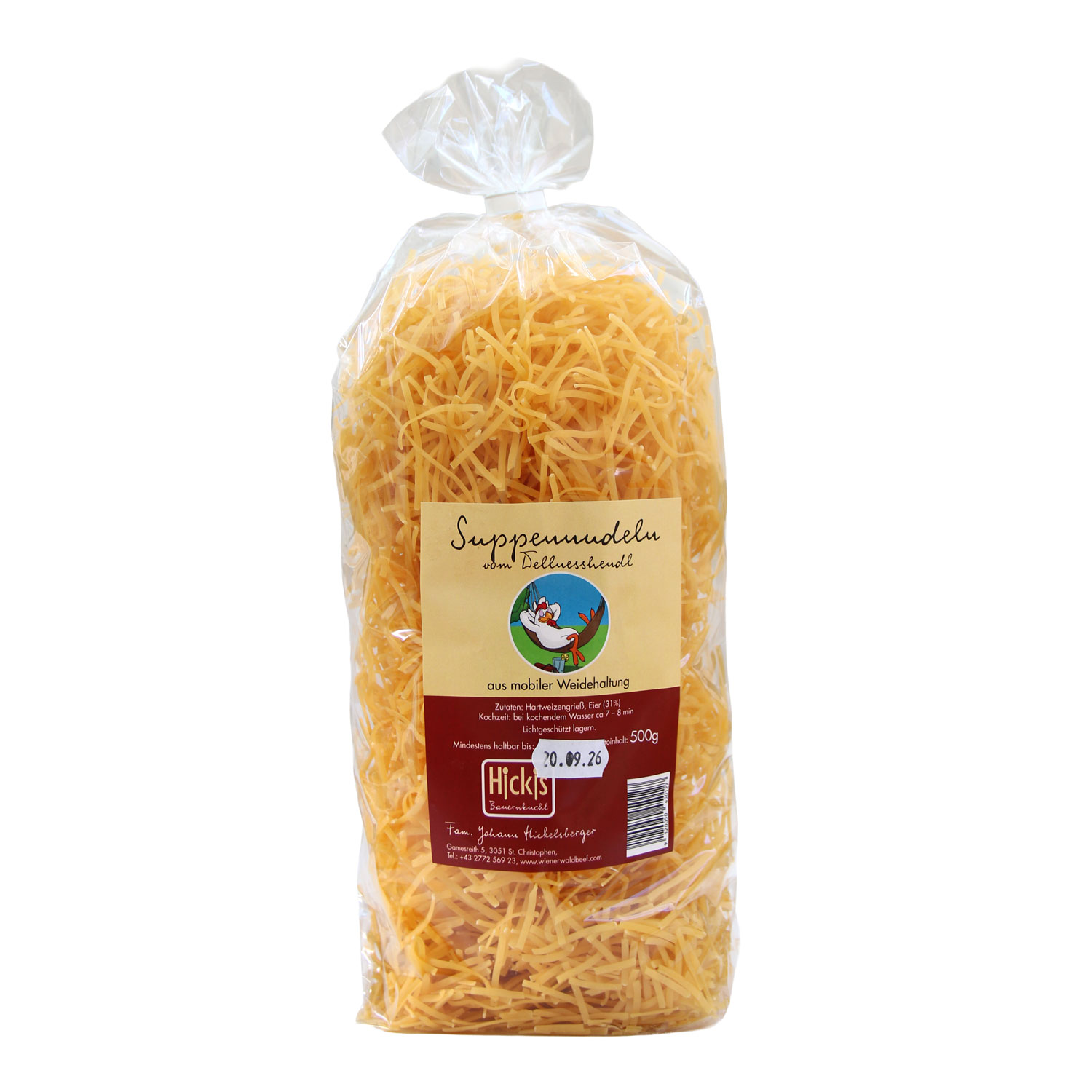 Unsere Nudeln werden mit viel Liebe und besten Zutaten hergestellt: Hartweizengrieß, eine Prise Salz – und vor allem die frischen Eier unserer eigenen Wellness-Hendl, die mit viel Auslauf und bestem Futter aufwachsen. Das macht unsere Teigwaren besonders goldgelb, kräftig im Geschmack und bissfest im Kochen.